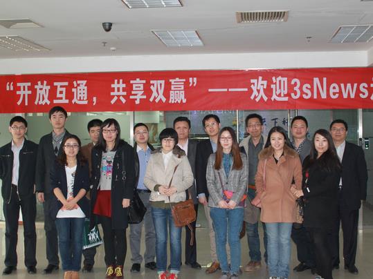 2014年3月17日下午,3sNews的采編團隊在總裁劉玉璋帶隊下,來到中科宇圖天下科技有限公司參觀學(xué)習(xí),受到了中科宇圖副總裁/中科宇圖資源環(huán)境科學(xué)研究院院長劉銳等公司領(lǐng)導(dǎo)的熱情接待。