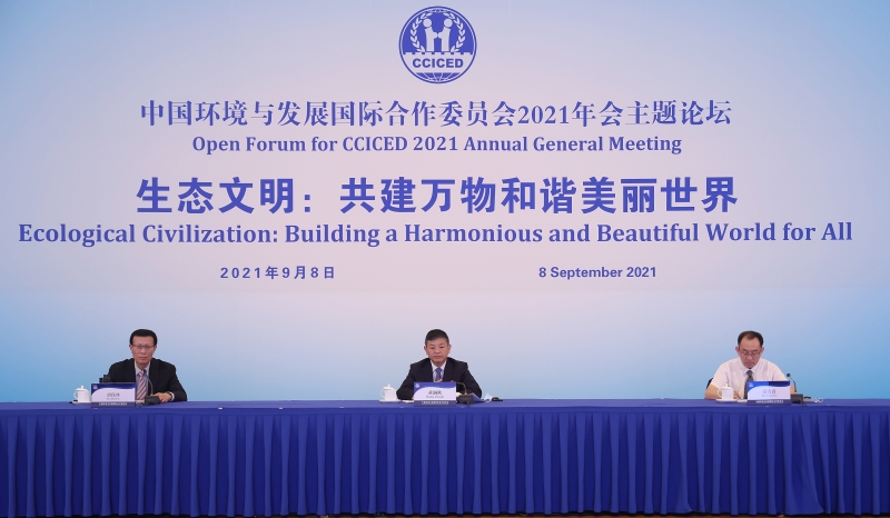 9月8日,中國環(huán)境與發(fā)展國際合作委員會(以下簡稱國合會)2021年年會“生態(tài)文明:共建萬物和諧美麗世界”主題論壇在京舉行。生態(tài)環(huán)境部部長、國合會中方執(zhí)行副主席黃潤秋出席并致辭。