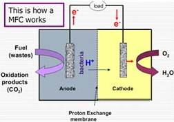微生物燃料電池是利用微生物的作用進行能量轉換(如碳水化合物的代謝或光合作用),把呼吸作用產生的電子傳遞到電極上的裝置。在微生物燃料電池中用微生物做生物催化劑,可以在常溫常壓下進行能量轉換。